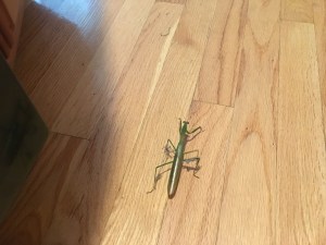 Research told her that, “Usually the Praying Mantis makes an appearance when we’ve flooded our lives with so much business, activity, or chaos that we can no longer hear the still small voice within us. Taking a step back is in order to quiet the external din we’ve created. She will always come to us when we need peace, quiet, and calm in our lives.”
